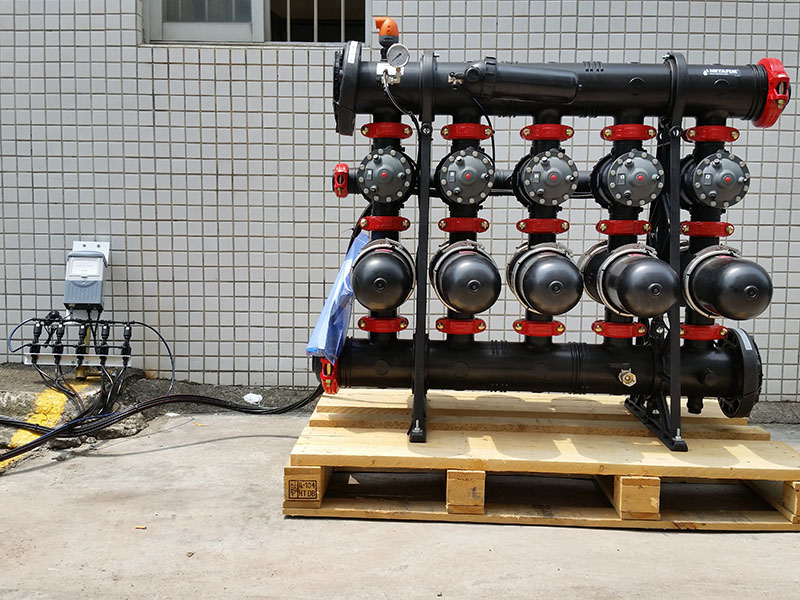 自清洗式叠片过滤器的过滤头和身是由增强聚酰胺塑料成形制造,防腐耐磨,可承受工作压力1.0Mpa。过滤叠片材质为聚丙烯PP塑料,密封为EPDM,进出水及排水管路可以选择为碳钢喷涂环氧树脂、HDPE、PP或不锈钢材质等,这一切使得整套过滤器系统能抵挡恶劣的水处理工作环境。